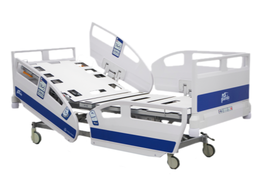 Posee actuadores lineales con nivel de protección IP66; lecho desmontable en HPL dividido en 4 secciones; 4 cilindros de protección en cada esquina, barandillas de 4 tubos de acero inoxidable o pintados y sistema de doble regresión para reducir la presión en la zona pélvica reduciendo de esta manera el riesgo de ulceras por presión (16 cm).