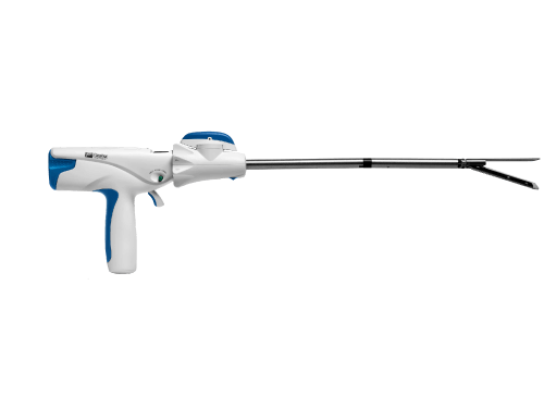 La Endograpadora Lineal Universal está disponible en 3 longitudes de eje diferentes: corto, estándar y XL. La endograpadora grapa y divide simultáneamente el tejido mientras coloca dos filas triples escalonadas de grapas de titanio en el tejido. El mango está diseñado para adaptarse a todos los tamaños de recargas y se puede disparar hasta 25 veces por paciente.