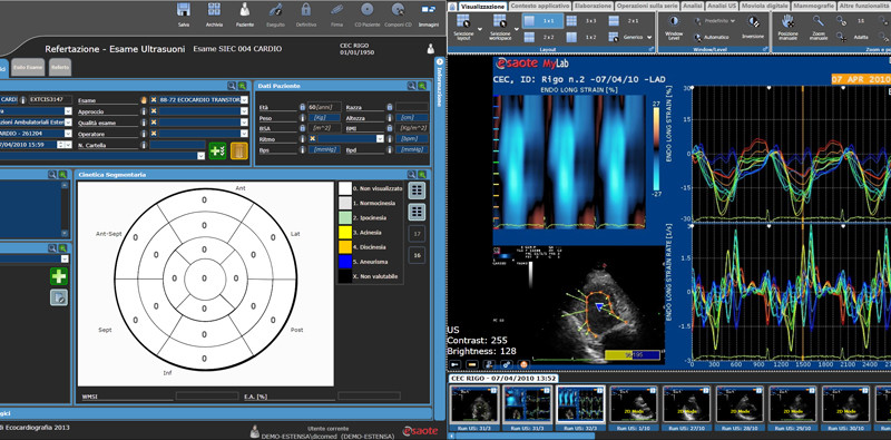 El nuevo enfoque exhaustivo para cardiología SUITESTENSA es la plataforma de software de gestión de imágenes e información CVIS PACS desarrollada por EBIT AET, la unidad de negocio de Esaote dedicada a los procesos diagnósticos de TI sanitaria. Al englobar todas las especialidades cardiológicas en una sola plataforma, SUITESTENSA permite un proceso de trabajo optimizado, desde el ingreso del paciente hasta la realización del examen, la creación de informes, la administración o la distribución. La carpeta de cardiología de SUITESTENSA contiene todos los exámenes efectuados en el departamento de cardiología (Cath-Lab, Echo, ECG, EP) y se puede conectar a otros exámenes diagnósticos para obtener el historial clínico completo del paciente con un solo clic.