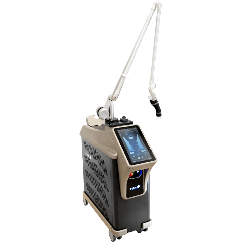 TORO es un láser Q-switched Nd:YAG que combina tecnología pico y nanosegundo en tres longitudes de onda (785, 532 y 1064 nm), para tratar eficazmente pigmentaciones complejas, tatuajes multicolor, lesiones dérmicas profundas y rejuvenecimiento. Seguridad, precisión y versatilidad con respaldo DEKA.